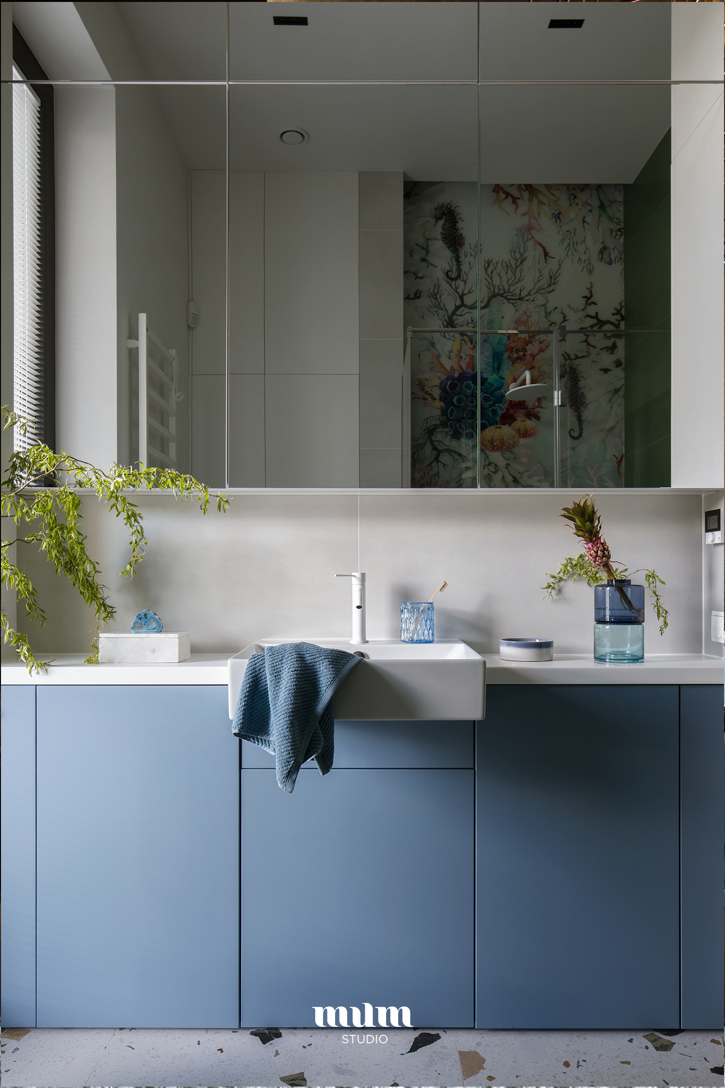 Naturalna kolorystyka, światło i wspólna przestrzeń, która zbliży domowników – to główne założenia projektu wnętrza domu pięcioosobowej rodziny z Białegostoku. Niewymuszony minimalizm jest bardzo bliski stylowi życia mieszkańców. Jednym z najważniejszych elementów projektu są wysokie okna i wewnętrzne przeszklenia, które łączą odrębne części domu i tworzą wrażenie większej dostępności przestrzeni. Stonowane barwy stanowią wdzięczne tło dla złotych dodatków, dzięki którym wnętrze nabiera elegancji. Jednocześnie betonowe sufity i podłoga wykonana w całości z mikrocementu nie pozwalają się ozdobom nadmiernie rozgościć, przypominając, że przestrzeń jest z założenia zachowawcza, a jej największym walorem jest przemyślana funkcjonalność.