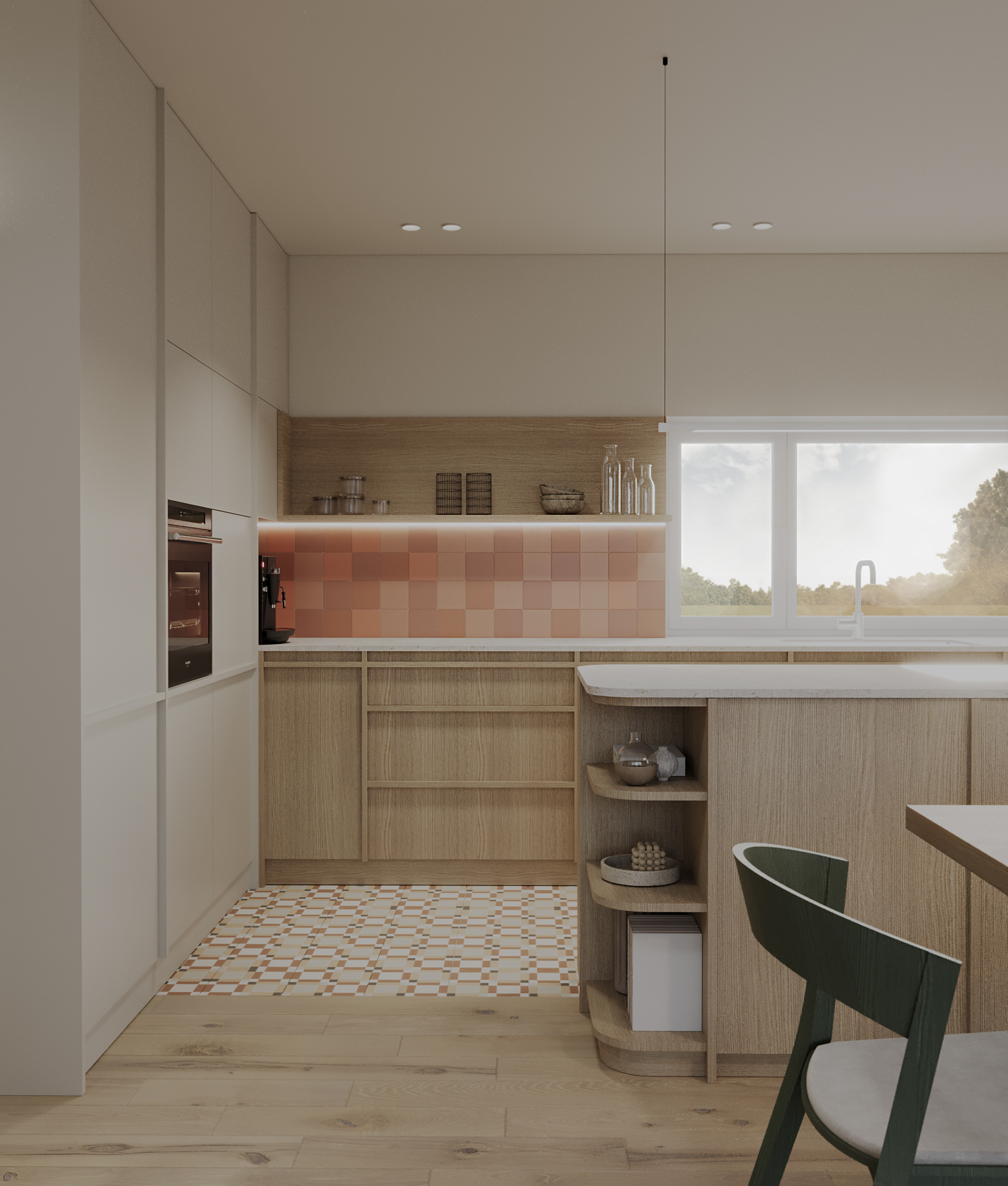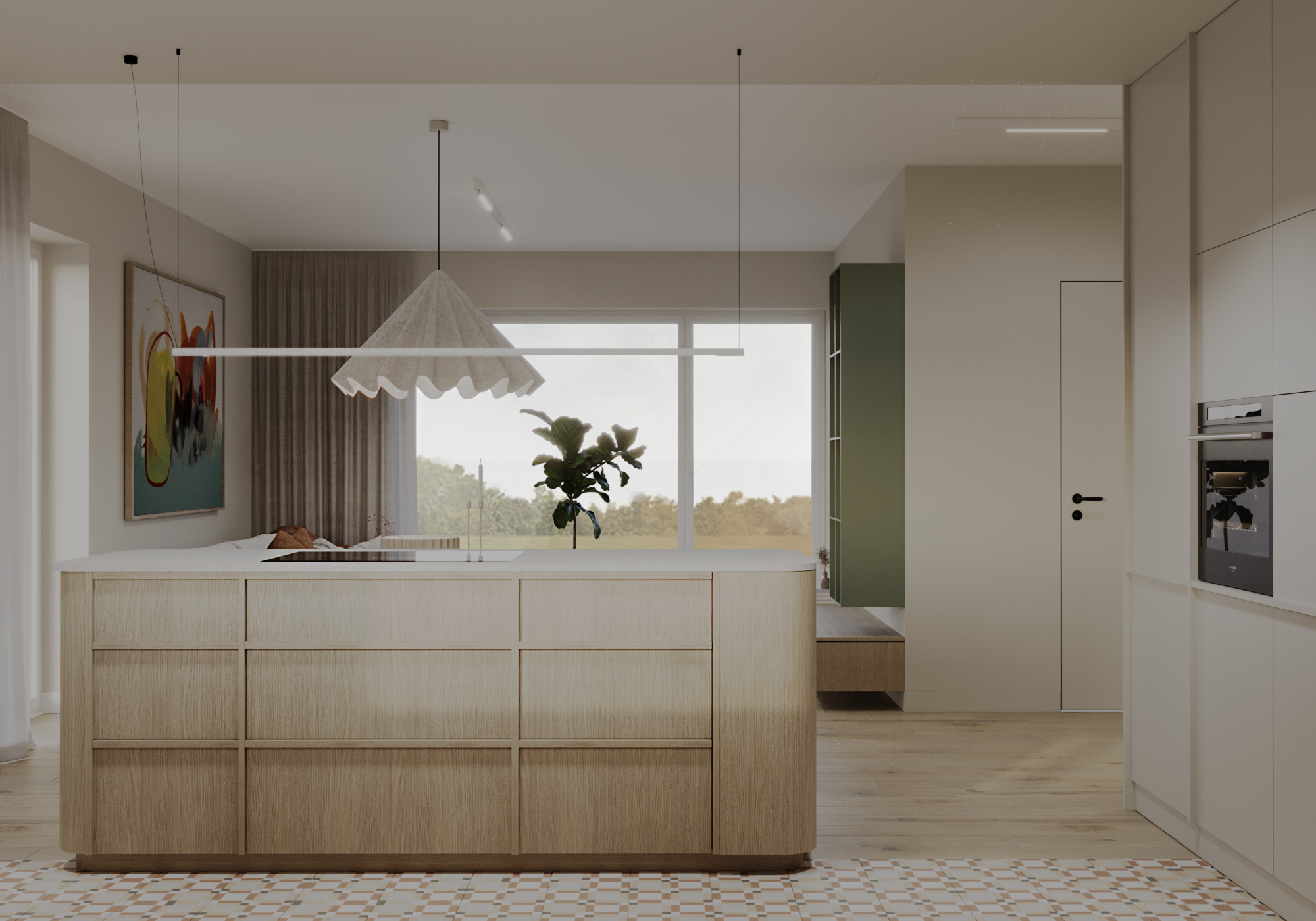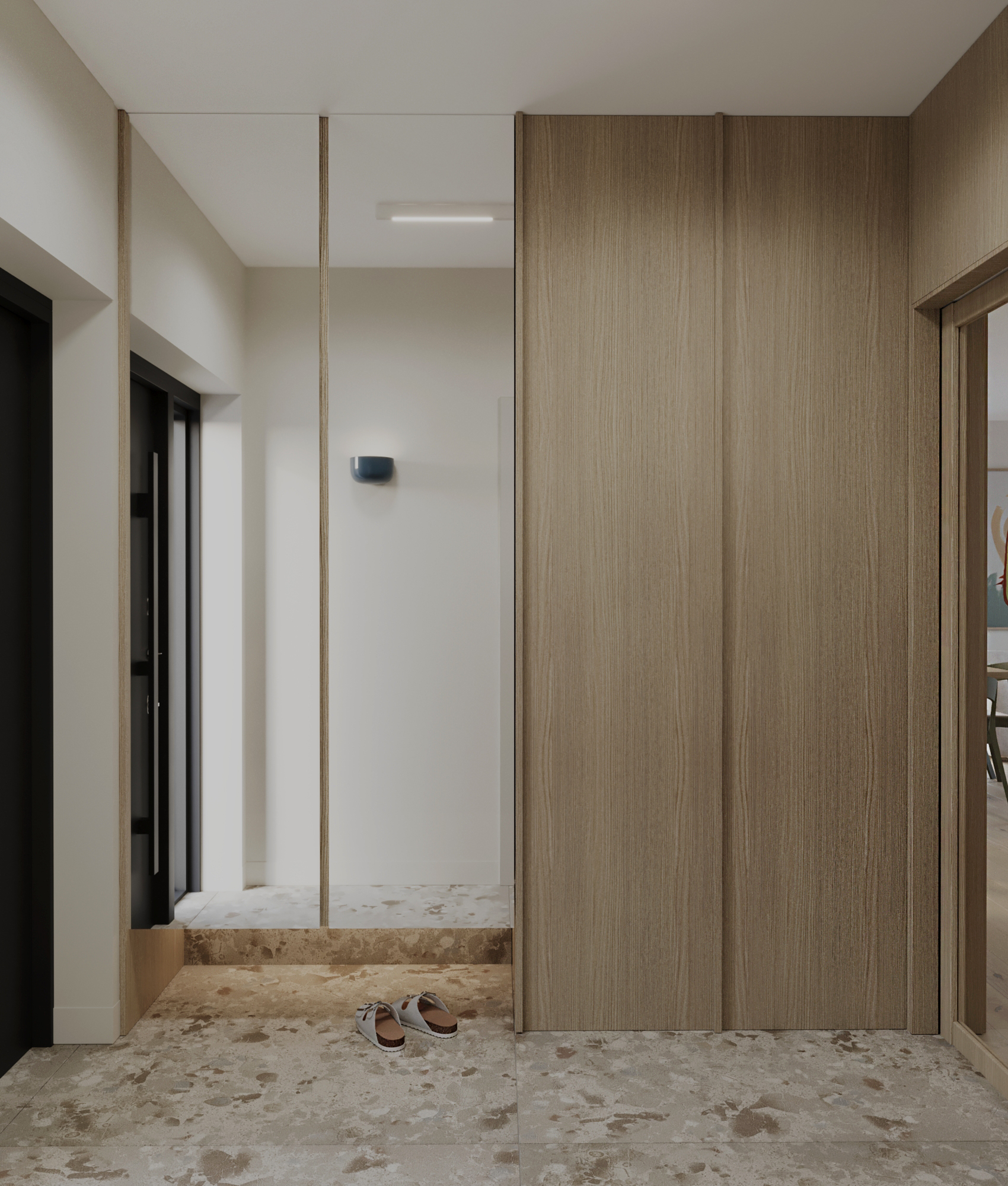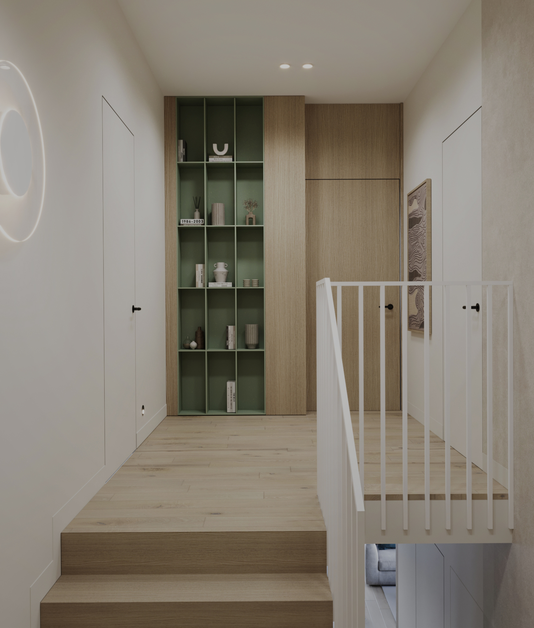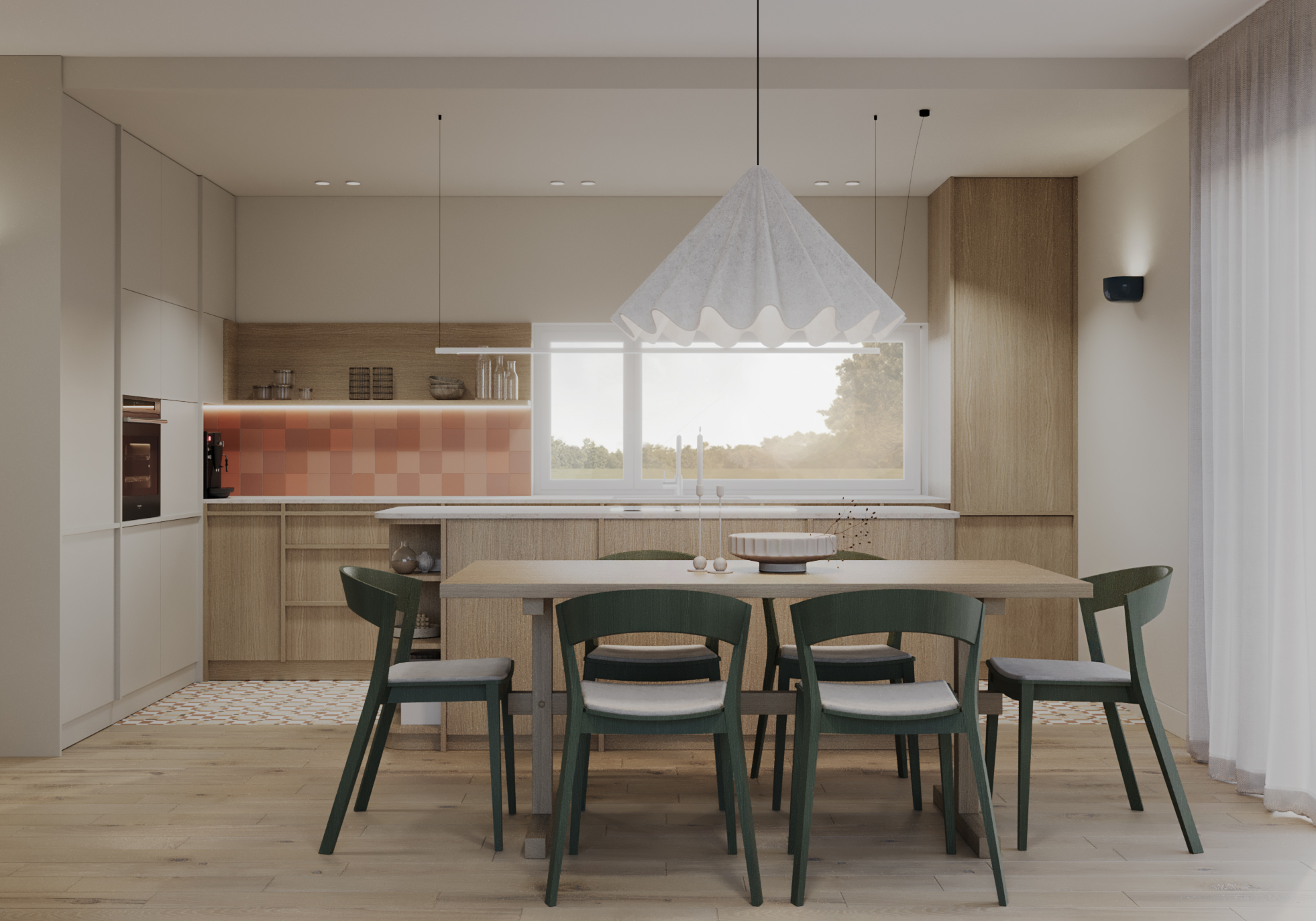 Dom w Otwocku zaprojektowany z myślą o młodej parze z dzieckiem. Oferując 150 m² starannie przemyślanej przestrzeni, dom łączy nowoczesny design z przytulnością, tworząc idealne miejsce do życia i wychowywania rodziny. Wnętrze zostało stworzone z wykorzystaniem wysokiej jakości drewna i kamienia, co nadaje mu niepowtarzalnego charakteru. Drewno wprowadza ciepło i przytulność, a kamień dodaje elegancji oraz trwałości. Te naturalne materiały harmonijnie współgrają, tworząc przestrzeń, w której każdy detal ma znaczenie. Nasze wnętrze to doskonała równowaga między klasyką a nowoczesnością. Zastosowane kolory są stonowane, lecz jednocześnie dodają energii i radości. Ciepłe odcienie beżu i brązu przeplatają się z akcentami w żywych kolorach, tworząc atmosferę sprzyjającą relaksowi i zabawie.