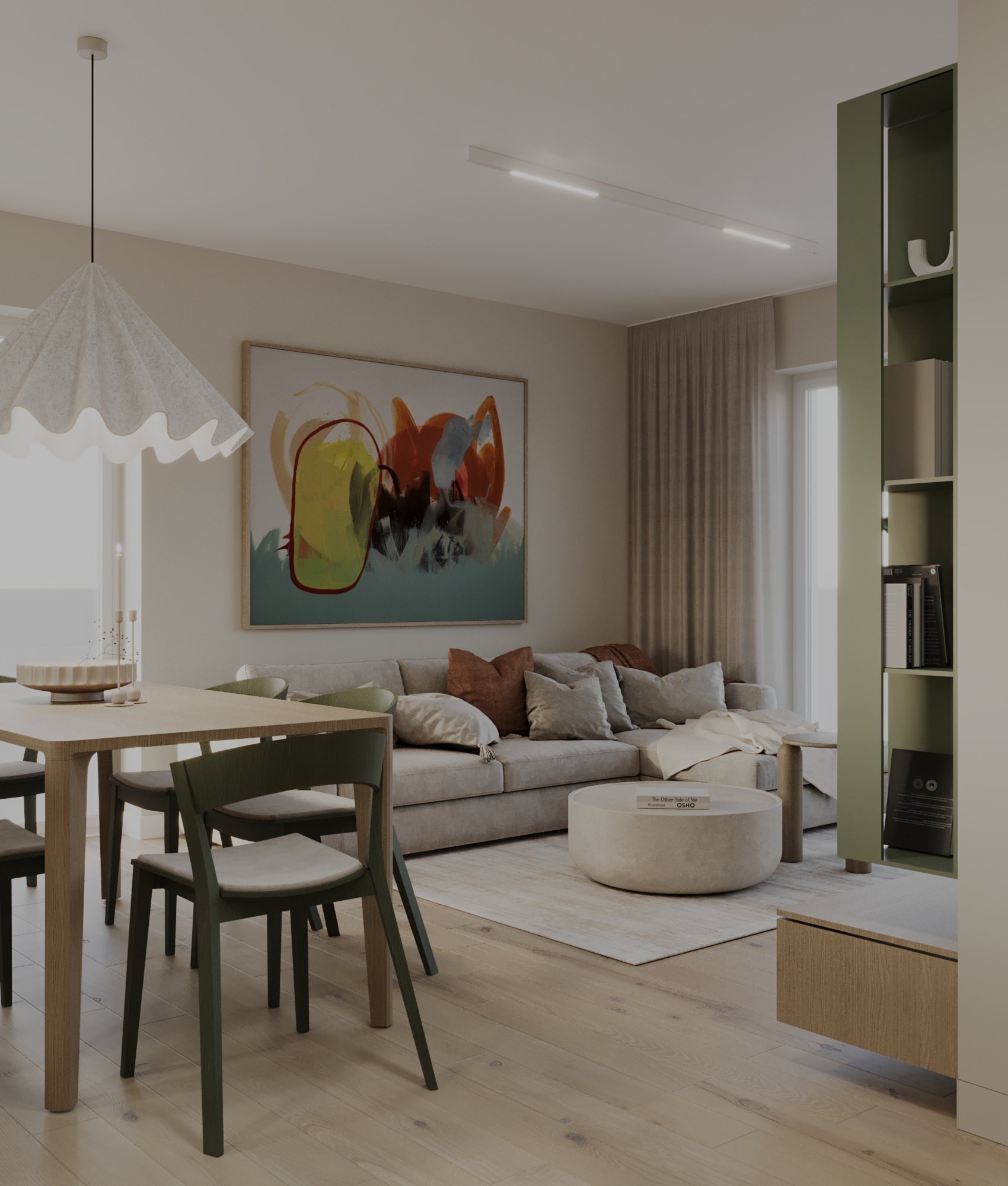 Zanurz się w przestrzeni, gdzie nowoczesność spotyka się z ciepłem! Oto kilka kluczowych elementów, które sprawią, że wnętrze zaprojektowaliśmy jako idealne miejsce do relaksu.