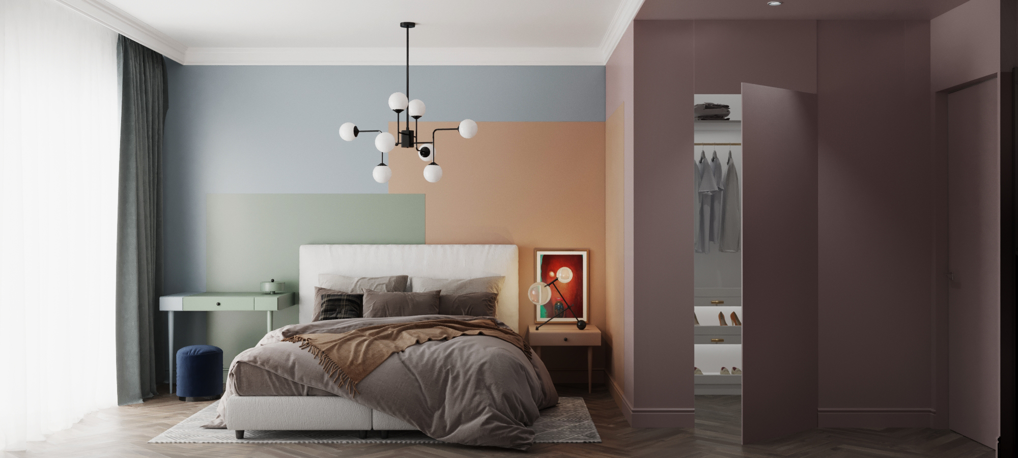 Projekt powstał dla młodej rodziny. Bardzo ważne było to aby projekt był przede wszystkim funkcjonalny oraz oryginalny. Miał mieć indywidualny charakter, nietypowe rozwiązania i kolorowy. Mieszkanie znajduje się w 19 Dzielnicy / osiedlu w samym centrum Warszawy.