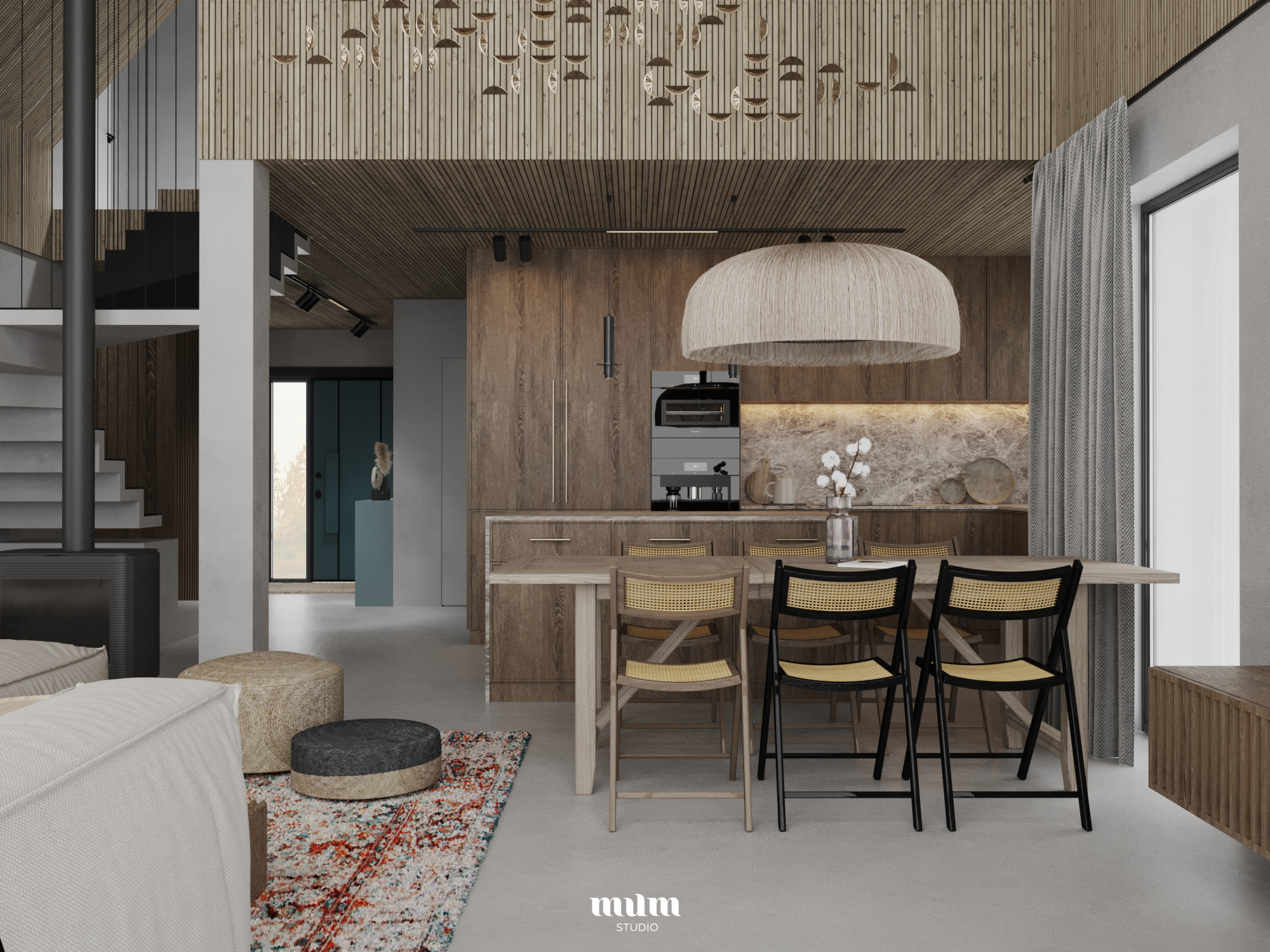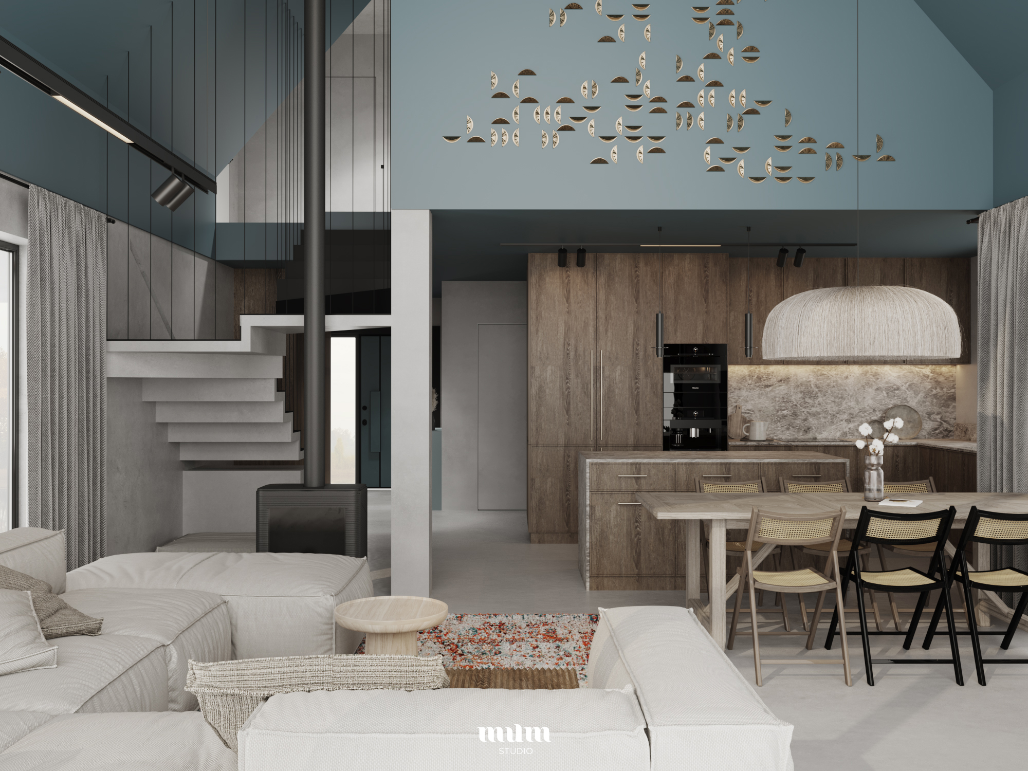 Projekt wnętrza domku letniskowego dla rodziny z dwójką dzieci. Do wnętrz przenikają się materiały i kolorystyka która otacza planowany dom. Nadmorski klimat, spokój i wakacyjny styl. Domek o łącznej powierzchni 155 m2, podzielony na strefę dzienną na parterze oraz strefę trzech sypialni z dużą łazienką na piętrze.