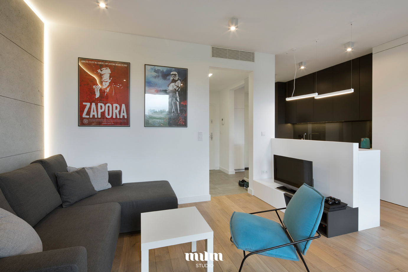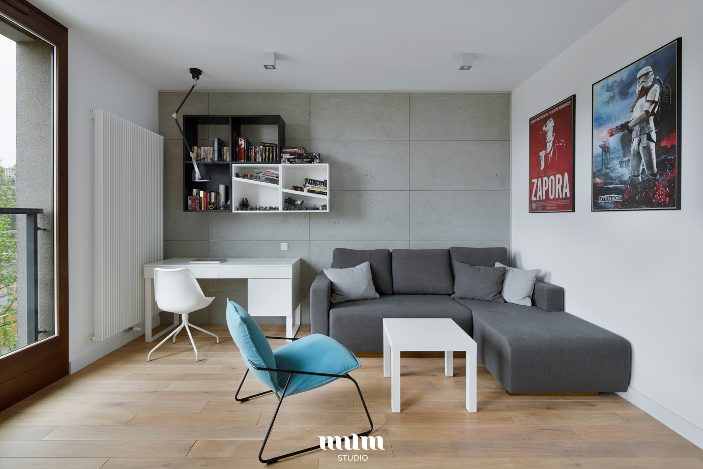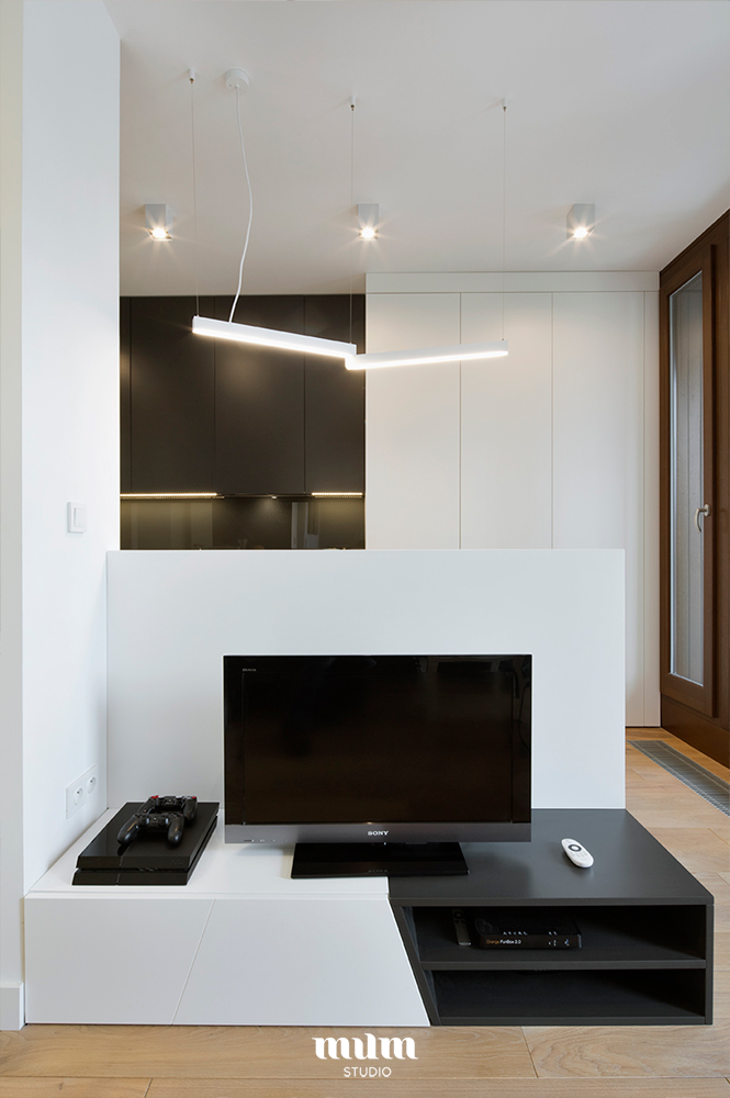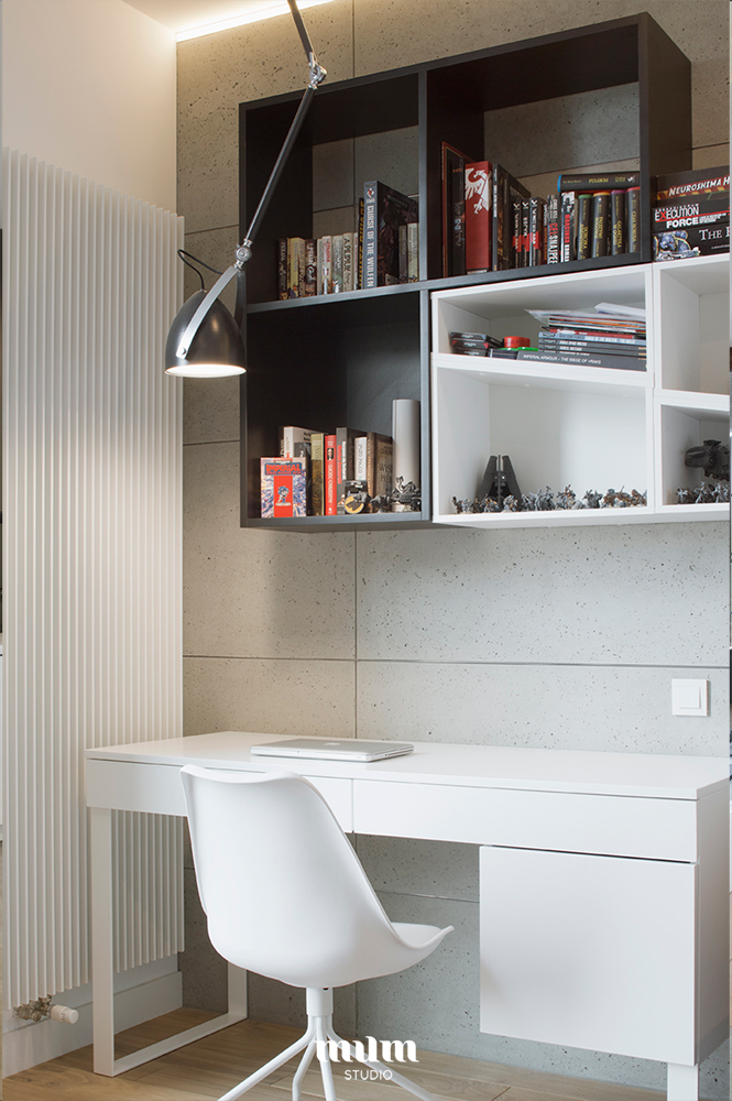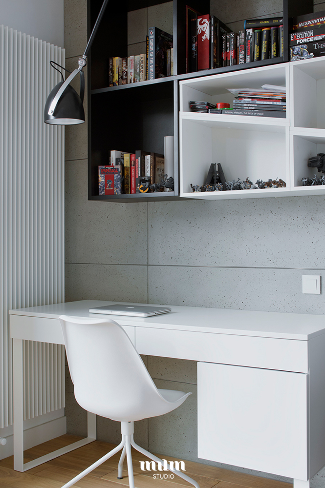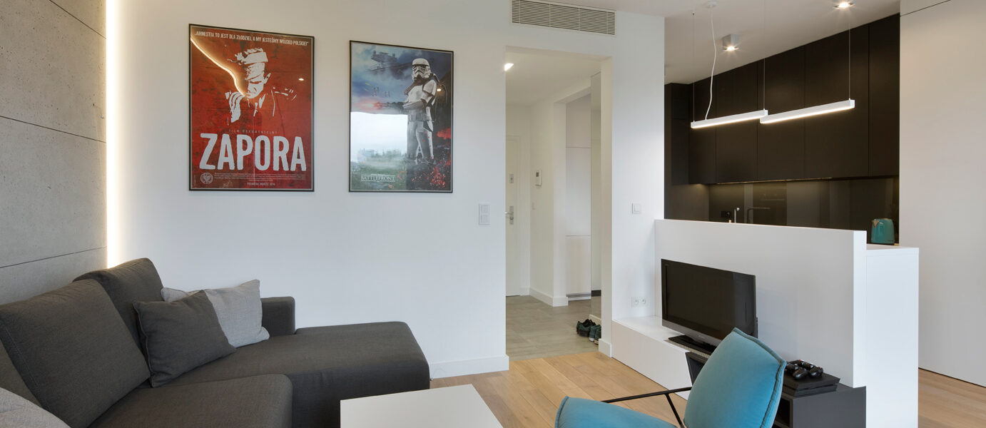 Mieszkanie zostało zaprojektowane dla studenta. W samym centrum Warszawy w inwestycji 19 Dzielnicy.