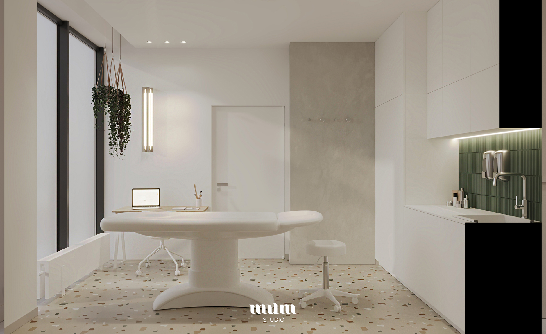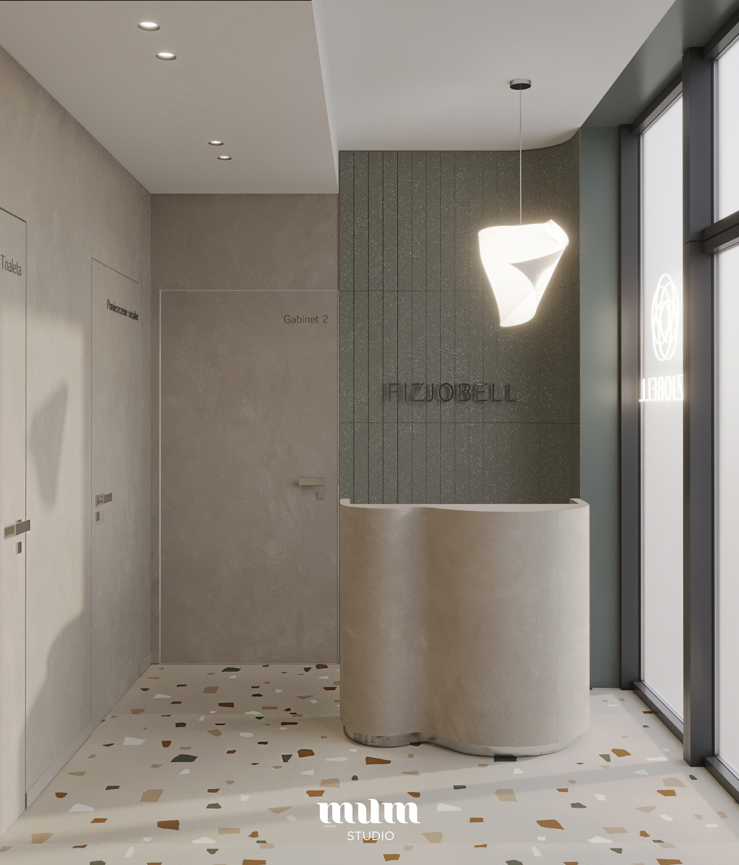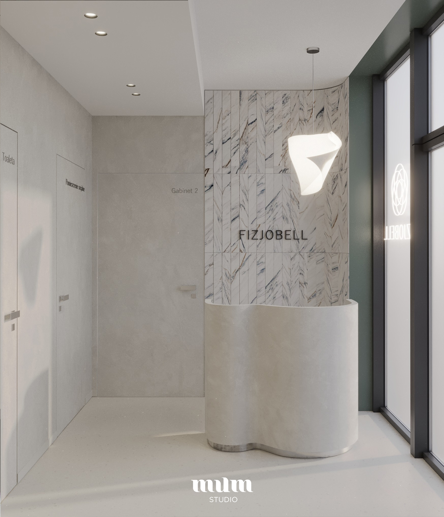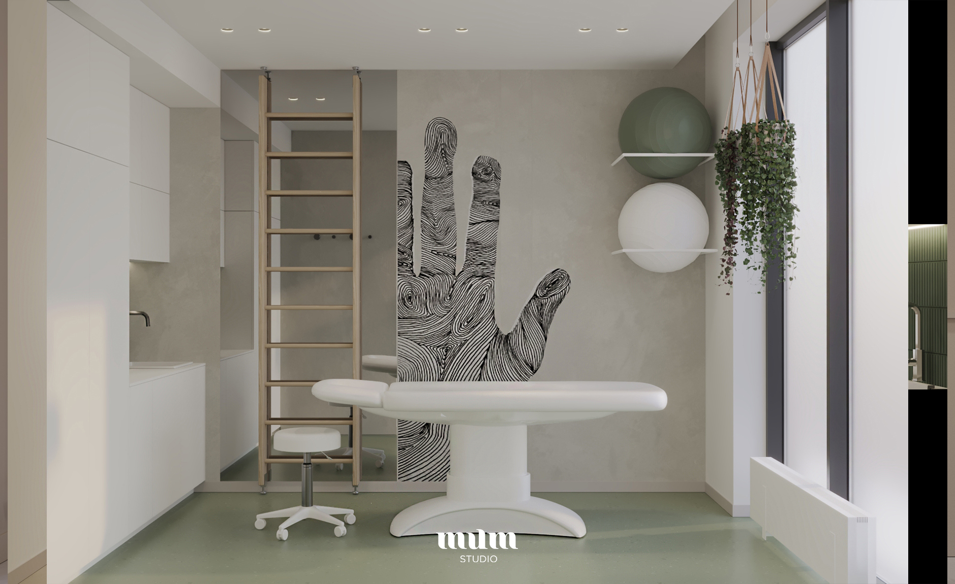 Zaprojektowaliśmy drugi lokal gabinetów fizjoterapii w nowej lokalizacji. Jest to lokal o powierzchni 41 m2. Wyzwaniem było podzielić go funkcjonalnie tak aby spełniał wszystkie wymogi sanepidu oraz przede wszystkim był funkcjonalny dla pacjentów i lekarzy.