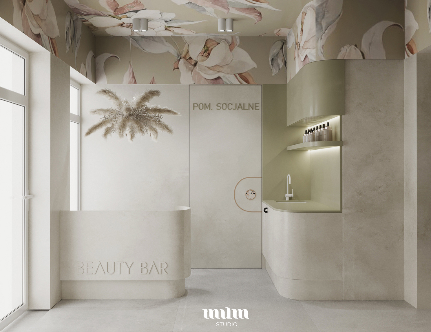 Pogodne, naturalne i nieco eteryczne wnętrze gabinetu kosmetycznego to przepis na dobre samopoczucie klientów już od samego wejścia. Wiedząc to, nasi zleceniodawcy wymarzyli sobie wnętrze pełne naturalnych barw i nawiązań do natury.
