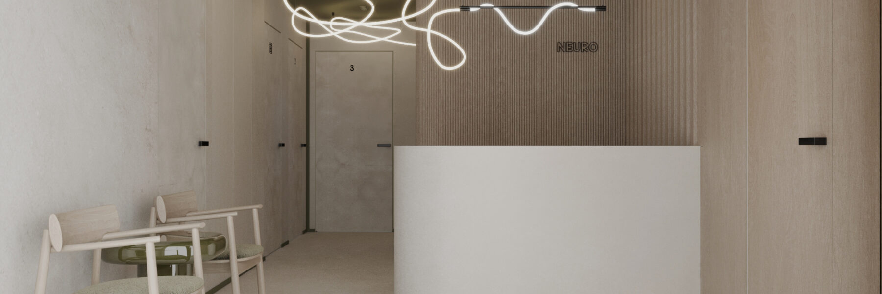 Specjalizujemy się w projektowaniu gabinetów medycznych o różnym profilu. Tym razem mieliśmy przyjemność zaprojektować gabinety neurologii. Naszym celem jest aby każdy zaprojektowany gabinet wyróżniał się na rynku, był oryginalny i kojarzony z daną marką. Podstawa projektu jest jego funkcjonalność oraz zgodność z normami Sanepidu. Po wielu latach doświadczenia potrafimy połączyć funkcjonalność na najmniejszych metrażach i pomieścić wszystkie konieczne usługi.